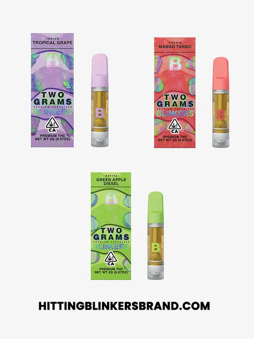Blinkers are premium 3.5G disposable vape pens, 2G carts, and more crafted from pure THC distillate for potent effects, rich flavors, and on-the-go convenience.